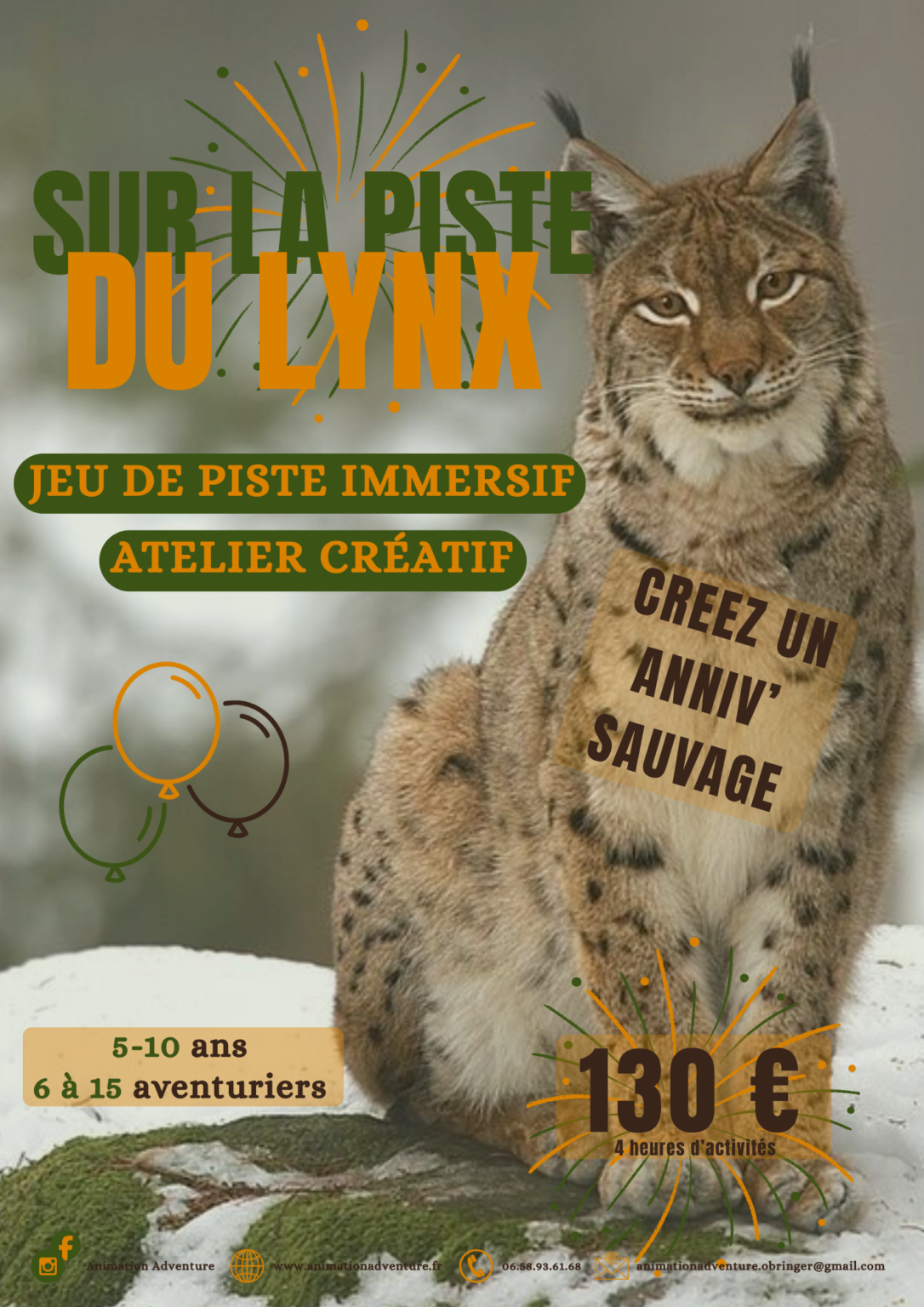Dans votre jardin ou la forêt voisine, vivez un jeu de piste sur mesure sensibilisant petits et grands aux besoins et menaces de ce grand félin de nos régions.